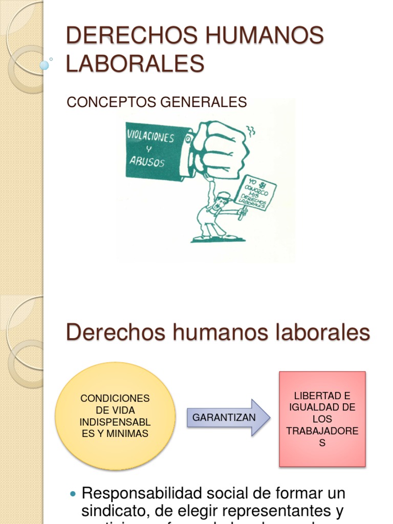 Los derechos laborales, ¿qué es? Son los derechos humanos que promueven la participación de los individuos en las actividades económicas, laborales y. 3.3 conceptos de los derechos humanos laborales. Son derechos con condiciones de vida. Cuando se trata de los derechos laborales, derecho a la sindicalización es la parte más central.