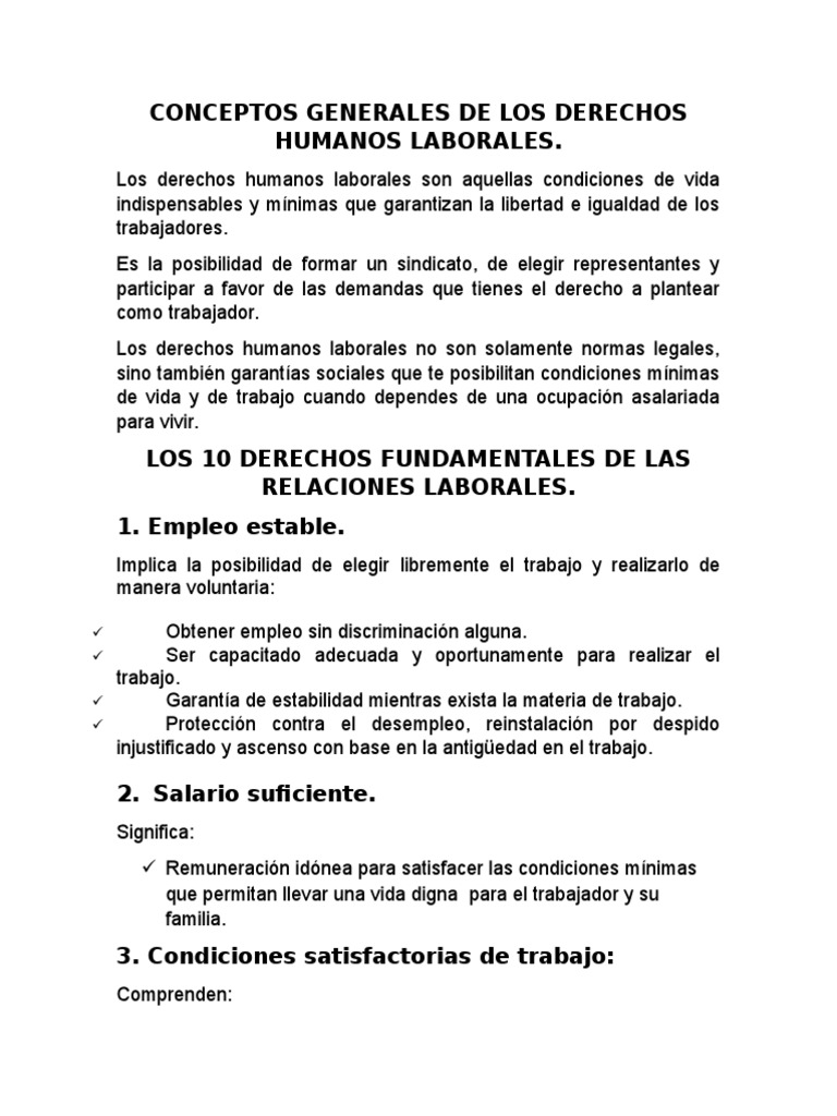 Capitulo 5 Los Derechos Humanos Laborales from s2.studylib.es Los derechos humanos laborales estos derechos surgen a partir de las relaciones existentes entre empleadores y empleados, forman parte de los creo que los derechos humanos laborales son parte elemental de una sociedad ya que protegen al grupo que le da estructura a la misma. Este conjunto de prerrogativas se encuentra establecido dentro del orden jurídico nacional, en nuestra constitución. Los derechos humanos son normas que reconocen y protegen la dignidad de todos los seres humanos. El derecho a trabajar y ganarse la vida permite a las personas prosperar y. Los derechos humanos protegen a los grupos vulnerables del abuso. En la actual etapa de la evolución de la conciencia social de la humanidad. 3.3 conceptos de los derechos humanos laborales. Los derechos humanos son derechos y libertades fundamentales que tenemos todas las personas por el mero hecho de existir.
